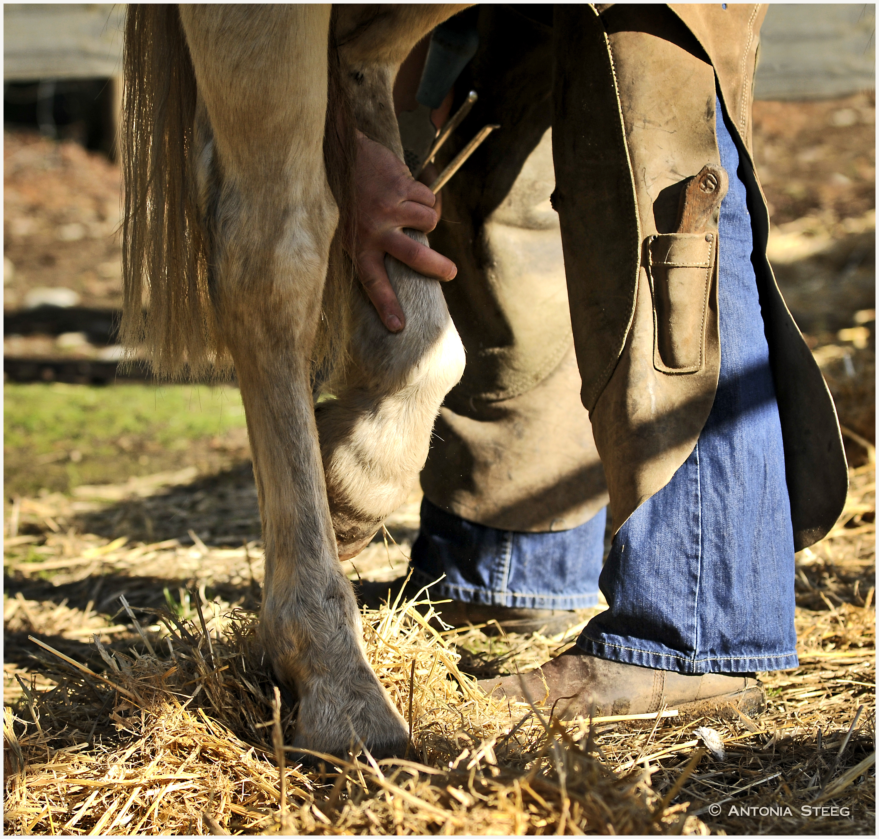 This is in the lucky event of nice weather. Not unusual to be expected to shoe horses in the mud. The most frustrating situation is, when there is a shed with suitable flooring and light, but the horse is not used to go inside and therefore you cannot use the workspace.